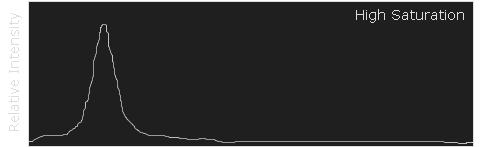 A color's saturation is a measure of its purity. A highly saturated color will contain a very narrow set of wavelengths and appear much more pronounced than a similar, but less saturated color. The following example illustrates the spectrum for both a highly saturated and less saturated shade of blue.