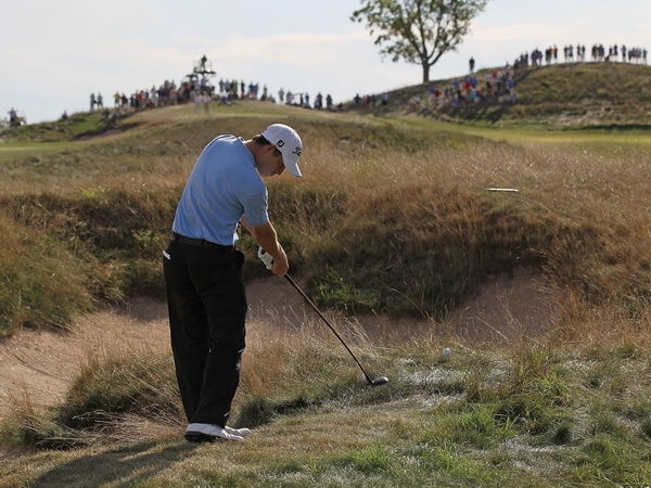 the rough on the 14th hole at the 2011 U.S. Amateur at Erin Hills. Kelly Kraft chips onto the